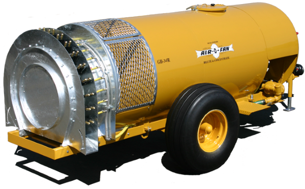 The Air-O-Fan "Reverse Fan" GB-34 "Short Stack" vineyard sprayers out-perform, out-last, and out-sell all other vineyard tower sprayers combined. Other manufacturers have tried to duplicate our tower and up-spray volute without success. The "Reverse Fan" models reduce the amount of leaves and dirt that normally plug the fan guard and housing. Fan life in sandy soil vineyards far exceeds conventional fan housings. Serviceability is made easier with larger guards and inspection covers. The amount of controllable air volume coupled with our short stack tower design enables the operator to spray effectively throughout all of the growing season in most applications. Air-O-Fan's ability to target the air pattern coupled with the towers ability to keep the air and spray in the vine canopy directly reduces drift, saves time, and achieves perfect coverage. The GB-34R "Short Stack" vineyard sprayers combine performance and simplicity, and can be used in both concentrate and dilute applications. The GB-Reverse Fan models come standard with our DK turning hitch and are also available with our 2-point turning hitch option, indented tank option for narrow rows, and our Myers© 2-stage centrifugal pump option.