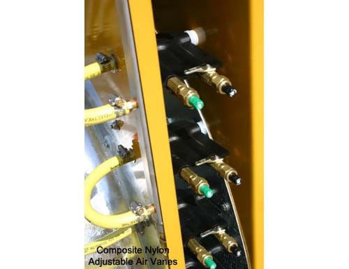 High density vineyard plantings have been, and will continue to be, the future of the wine grape growing industry and Air-O-Fan’s answer to this growing popularity of narrow vineyard row plantings is the SJ-300V "Slim-Jim" vineyard sprayer. The overall width of this model is only 52" tire to tire, with a fan housing width of 41", making it one of the industries narrowest commercial grade 300-gallon sprayers. The SJ-300 is ideal for 6 to 7 foot vineyard rows and we offer 2-row and single row vineyard attachments (short stack and volute tower) to cover more ground as well as supply better spray coverage. The Short Stack tower provides coverage from the top, middle, and under the vine skirt to spray each complete vineyard row that the sprayer is in. Utilizing a 32" fan for maximum air flow. The vineyard volute on the SJ-300V directs all the air and chemical to the canopy for maximum coverage similar to our SE vineyard models, but much narrower. Standard features include: Air-O-Fan's vineyard volute tower, composite nylon adjustable air vanes with dual bank nozzles for multiple (3) calibrations, Comet® APS-101 26 GPM diaphragm pump, and a standard hitch with constant velocity PTO shaft. Our DK turning hitch option allows for tighter turns and better maneuverability in hilly and uneven vineyard terrain than a standard draw-bar hitch. Our 2-point turning hitch (recommended for flat ground) is known for its simplicity, durability, tight turning, and flexibility through rough terrain.
